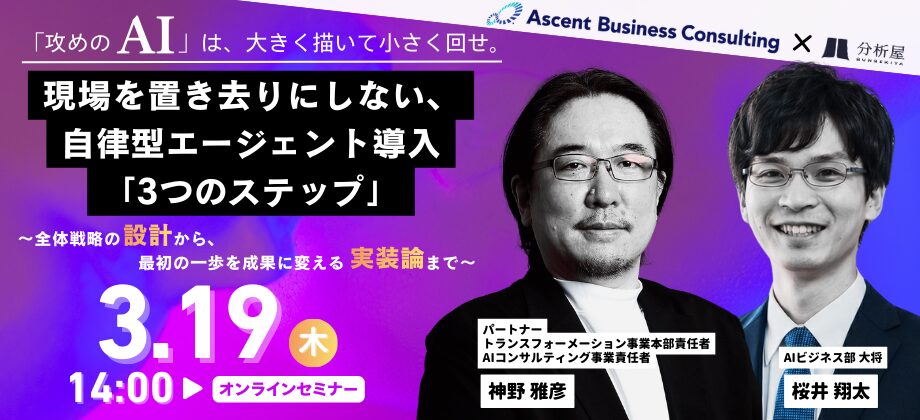 株式会社分析屋は、Ascent Business Consulting株式会社と共同で、2026年3月19日(木)に無料ウェビナーを開催いたします 。